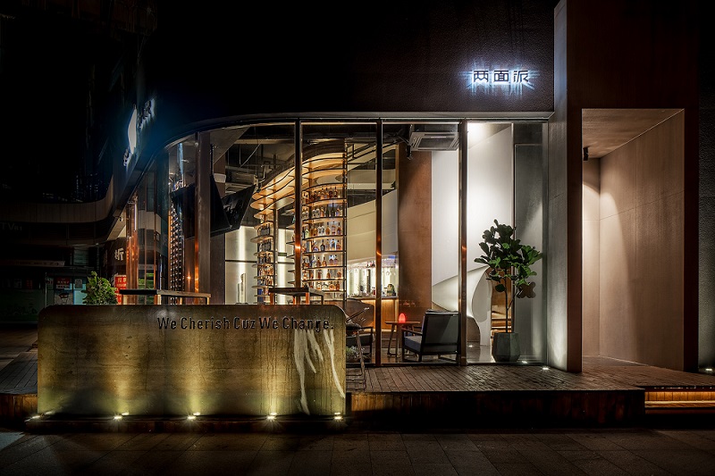 設計技巧:運用豐富的視覺感官創造動靜相宜的酒吧空間,以吧臺為核心和原點,刻意抬高的組合設計將空間分割成不同的功能區域。利用原建筑層高的優勢,通過具有雕塑感的雙螺旋